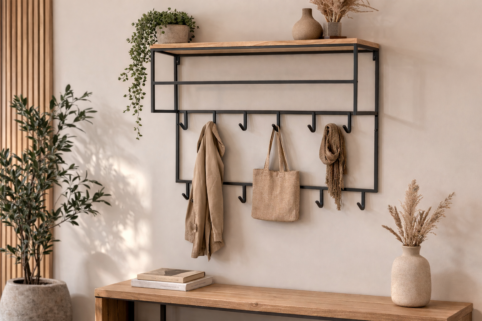 Veel ophangruimte – 2 rijen haken voor jassen, tassen en accessoires
